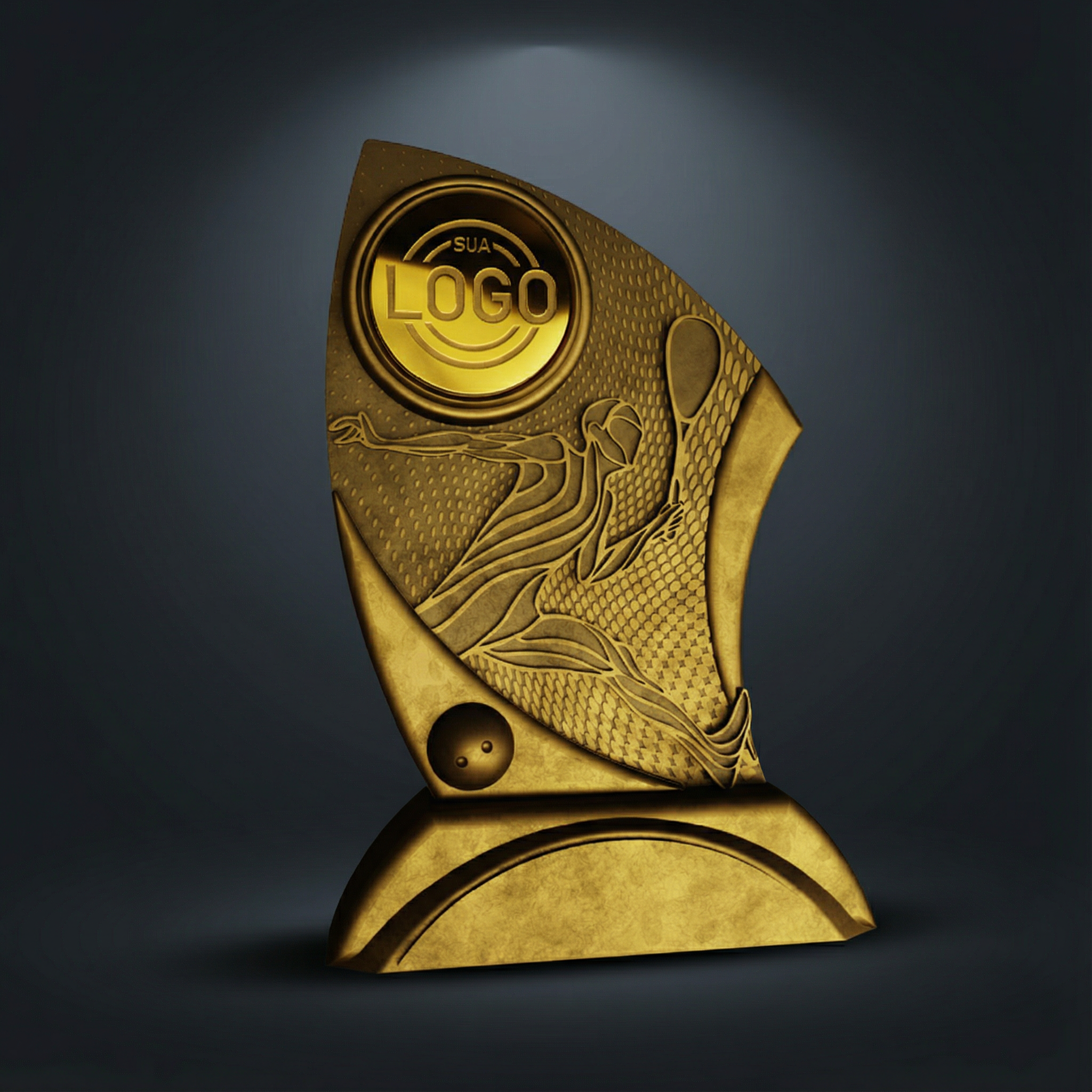 Diseño con sensación de dinámica continua: volúmenes «en movimiento» que remiten a la velocidad del juego. La composición ligera garantiza elegancia en mesas de premiación y óptima visibilidad en el post-evento (exposición/porta-trofeos). Perfecto para etapas con atractivo atlético y juvenil.